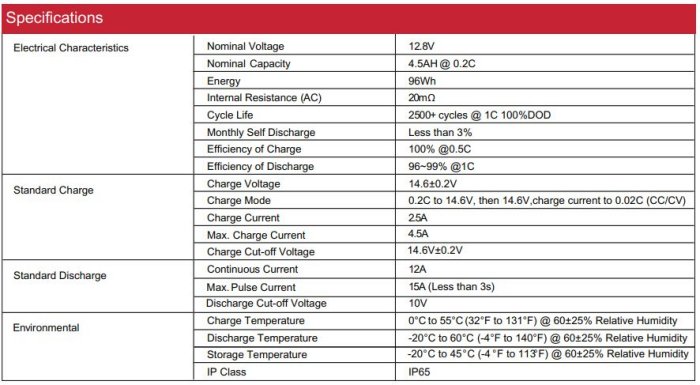Canbat - Model CLI4.5-12 -12V 4.5AH Lithium Iron Phosphate Battery - LiFePO4