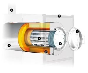 The heating elements are located outside of the retort. An over-temperature thermocouple is used for unattended operation. Further thermocouple probes can be integrated into the retort upon request.