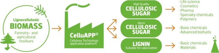 CelluAPP® makes it possible to process almost all forms of biomass into environmentally friendly, high-quality and marketable chemical products and raw materials such as biogas, cellulosic sugars, ethanol and lignin. Which in turn can be used as climate-neutral and high-quality raw materials in the manufacture of many of the everyday products around us such as cosmetics, hygiene articles, biofuels, plastics and pharmaceuticals.