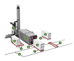 Process chambers operate in “DRYING” or “PYROLYSIS” modes: a “RELOADING” mode is also provided.