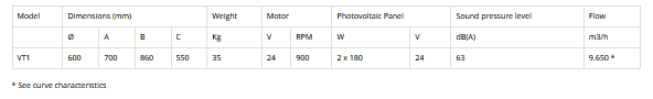 VT1 - Industrial Model - High flow rate without energy cost. Industrial Solar Ventilator of high flow and high performance for use in roofing.