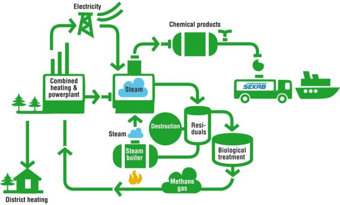 In our chemical plant, we produce green products from renewable raw materials in a process that is run on green bioenergy. This provides a product with very low emissions of climate impacting carbon dioxide with respect to the entire chain.