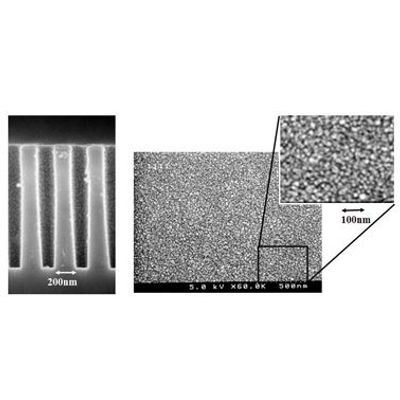 The DER structure provides short incubation time for deposition and a lower effective deposition temperature. Dense film nucleation, smooth film morphology, and excellent step coverage are achieved using the DER. Contact us for additional information.