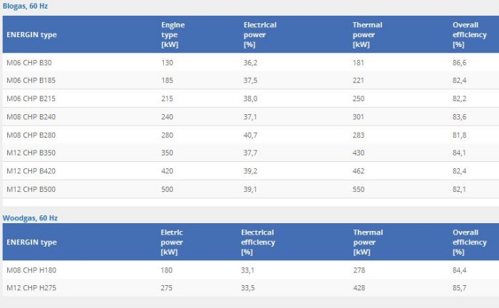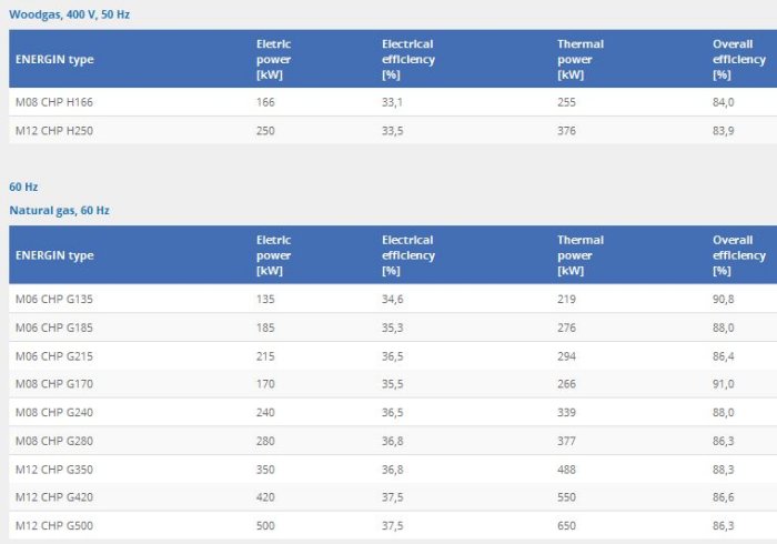 - Fuel options: Natural gas, Biogas, Wood gas, LPG and syngas