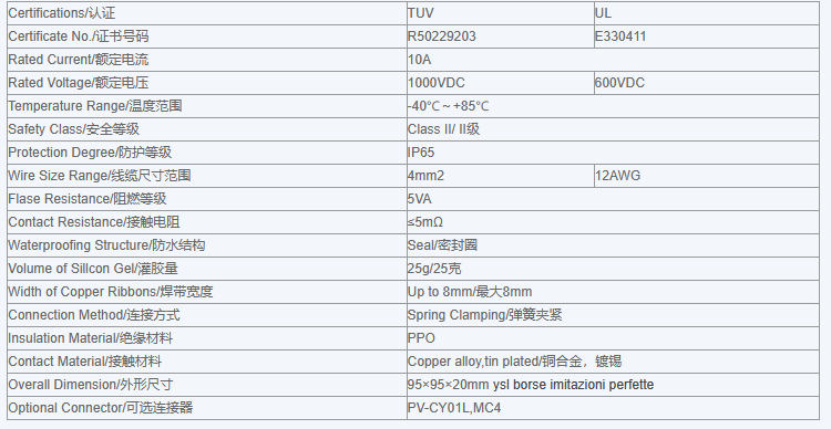 Chuangyuan - Model PV-CY1201 - Crystalline Silion PV Junction Box