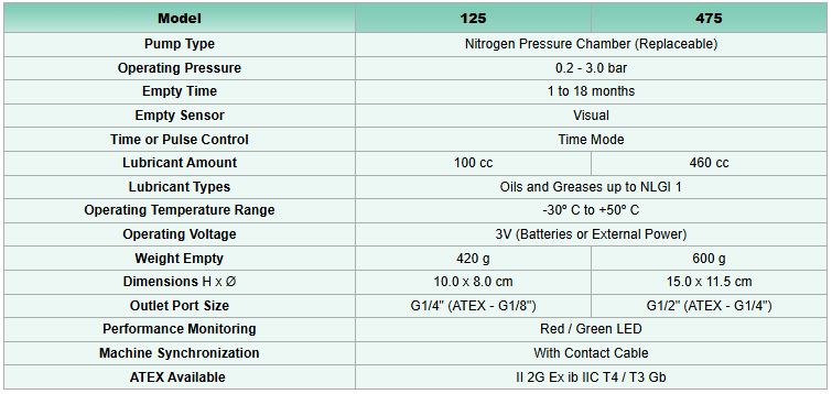 These single-point lubricators are electronically controlled lubricators which offer precise, reliable delivery of lubricant based on the grease gun principle. After setting the dip-switch settings on the lubricator, nitrogen gas is generated electronically to build pressure and move an internal piston.