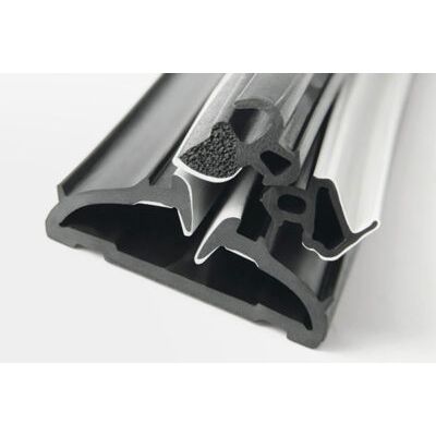 Application: Construction industry. Material: EPDM + foam rubber-EPDM. Special feature: Co-Ex + Tri-Extrusion, hard/soft combination, various color combinations possible (e.g. black/white).