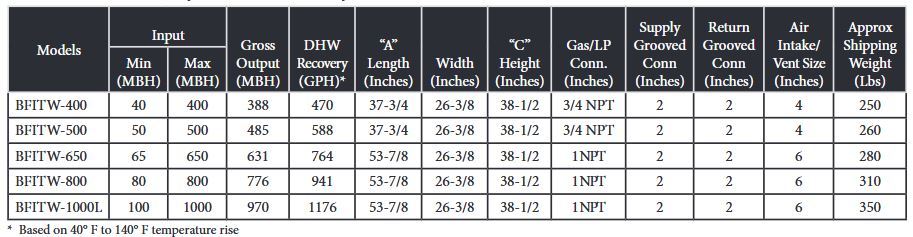 Bryan - Model BFITW Series 400-1000 MBH -Commercial High Efficiency Condensing Boilers and Water Heater