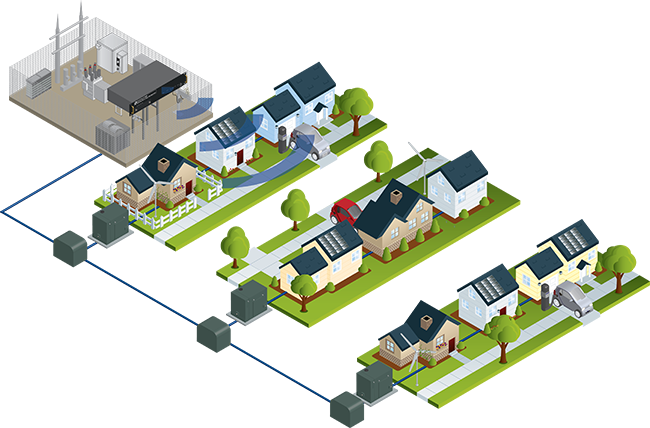 In the event of a power outage, the PureWave CES Community Energy Storage System automatically restores power to customers in seconds – a major goal of the self-healing Smart Grid 25 kW of scalable energy storage at the edge of the grid.