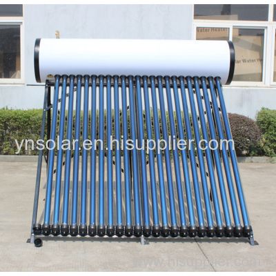 Compact Pressure Solar Water Heater working principle: The solar heater tank has no exhaust hole, therefore, it must bear the pressure came from tap water and hot water,when use, the hot water comes out because of water pressure. Vacuum tube absorbs solar energy, and conductive copper pipe transfers the heat into the pressurized solar water heater tank. In this case, the water inside the tank becomes hot. No water in the heat pipe makes the whole system could bear pressure.