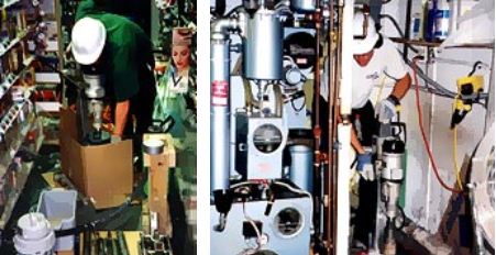 All of our crews are equiped with electrical concrete coring machines to cut through reinforced concrete floors and walls. The diamond bits used by these corers can cut 2.5`, 4`, 6`, 8`, and 10` holes.