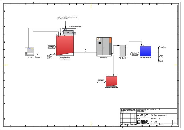 In the Evaporator ET, the oil, dirt and mixed in additives are separated from the water. A PCS Unit is installed downstream from the ET in order to reduce the amount of volatile elements in the distillate.