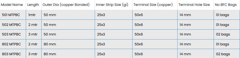 Advantages: Up to 250 microns Copper Bonding on Electrode. Longer Life due to Process of Bonding Over Electrode. Highly Conductive. Due to plating cost effective. Easy to Install.