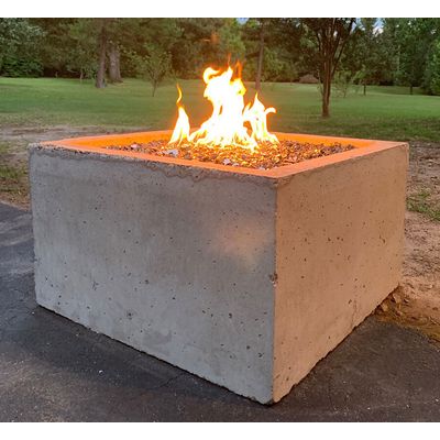 This package includes: 3’ x 3’ x 21” tall concrete shell (1000 lbs). Choice of fire rock; Lava, Reflective, Glass. Choice of square or round burner. Choice of LP or Natural gas set up.