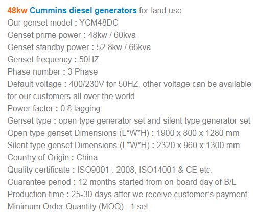 Cummins diesel generators are built to order manufactured in China. After we get deposit from the customer, our factory can start to produce Cummins generator sets for you. That means we only supply 100% NEW Cummins diesel gensets for the global buyers. Our commercial industrial Cummins diesel generator sets shall be classified into 2 categories, namely, Dongfeng Cummins diesel generators (DCEC) and Chongqing Cummins diesel generators (CCEC). 20kw to 400kw Dongfeng Cummins diesel generator for land use. 200kw to 1200kw Chongqing Cummins diesel generator for land use