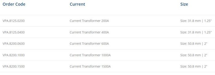 Select your current transformer for your application. Be aware, the 3 Phase Power Meter needs to be ordered separately.