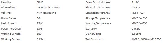 For-Leaves - Model 15W 12V/18V -Custom Round PET Solar Panel