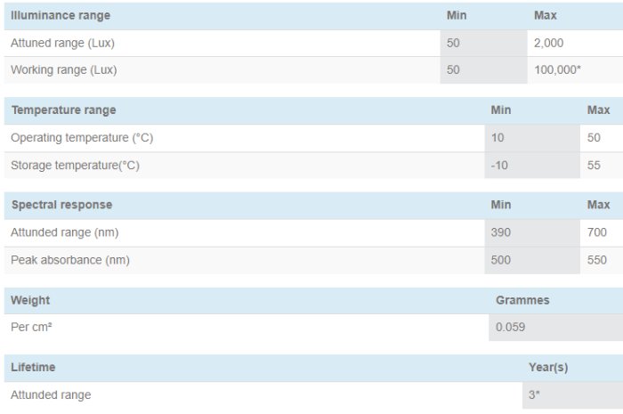 Our calculation method uses power output (e.g. microwatts) for a given area (e.g. per cm²) at a luminance level (e.g. 200lux). Depending on the chemical formulation, materials used and customer requirements GCell’s power density at 200lux ranges from 4-7μW/cm².