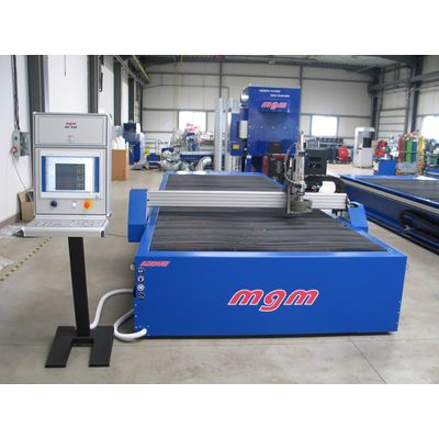 The high quality standard of the machines made by company MGM, spol. S r.o. With very high ratio price/performance and price/utility. Is suited to support of plasma or laser technology. Compact gantry design with guiding rails integrated into the suction table. Gantry is of the lightweight alloys and with reduced headroom to minimize the inertia forces effect. Double-sided drives in the X axis. Excellent dynamic and static characteristics. Precise linear guidance in X and Y axes in maintenance-free and lubrication-free design. Planetary gears pinion/toothed rack, backlash-free, maintenance-free and lubrication-free. High positioning speeds (up to 40 m/min). High movement accuracy during cutting and positioning.