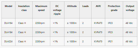 The DLA 184 series are DC generators for telecommunication and lighting towers (LED). The generators comply with IEC 60034, NEMA MG1-32, ISO 8525, CSA C22.2-100, VDE 0530, GB7
