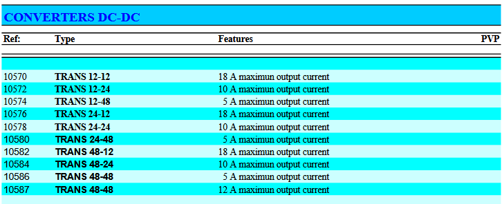 Technical Specifications: Input voltage ranges:. For 12V: of 10 to 18V. For 24V: of 18 to 36V. For 48V: of 36 to 72V. Protection against reverse polarity input, EMI filter and fuse.. Output protection against short circuits and overvoltage, with current limitercon.. Can be used as battery chargers (For direct connection). Temperature: -10ºC hasta +50ºC. Standard rules CEE.. Measures: 160x108x80 mm. 2 year warranty.