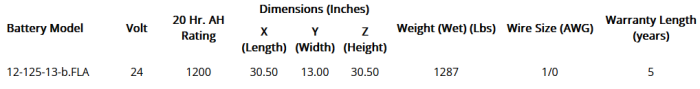 Deep Cycle Battery, 24 Volt, 1200 Ah (at 20 hr.). Some 24 Volt batteries do not come with a cover, the image is for illustration purposes only.