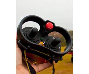 This DR150 Remote Control allows the operator to position himself anywhere when “driving” the rig. It’s especially advantageous to put yourself out in front of the rig so you can see any obstacles. A machine this large really obstructs the operator’s view if he has to walk behind the rig. Furthermore, the radio is much safer in placing the operator at a good distance from the moving machine.