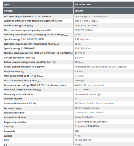 - Fully compliant with all requirements of VDE-AR-N 4100 on the use of SPDs upstream of the meter panel