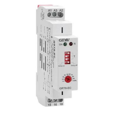 GEYA Dual function time relay can be used for industrial equipment, lighting control, heating element control, motor, and fan control, with two delay modes, and the delay range covers 0.1 seconds to 10days.
