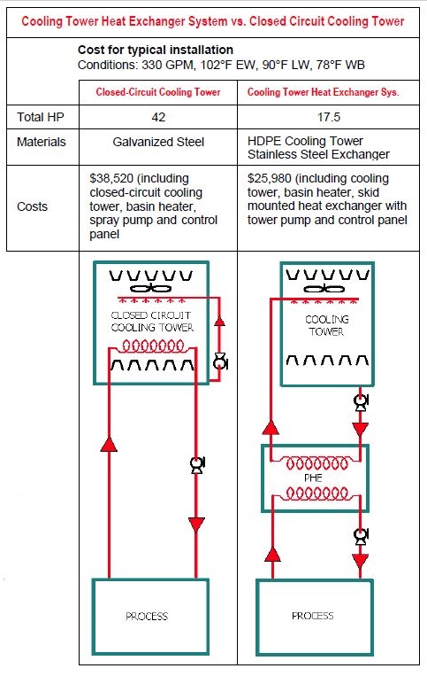 The advantages of this system over a closed-circuit cooling tower (usually galvanized sheet steel and galvanized steel coil inside a cooling tower box) are: