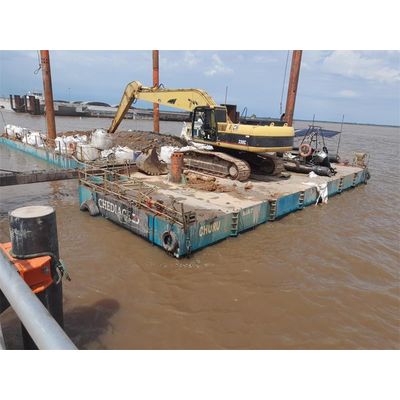 1. Multi-purpose barge for rive engineering work 2. Moldar design with easy transport for different applications saves clients' operation cost 3. Sturdy and durable, Low maintenance cost, long service life.With our 36 years of rich design and manufacturing experience, HID provided a multi-purpose platform for the Uruguayan customer Chediack. After completing a three-year bridge construction project, the platform was successfully transferred to another engineering site for drilling work in a wide river.