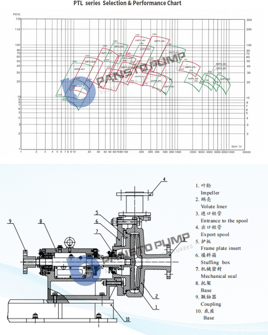 PTL series desulphurization circulating pump is horizontal, axial suction, single stage, single suction, suspension, after pumping, single shell structure. This series of pump in hydraulic design, structural design, taking advantages of similar products at home and abroad and innovation, and flow components developed by using the special material GLH - 5, GLH - 6, with high efficiency and energy saving, corrosion resistance to abrasion, small vibration, low noise, reliable running, shaft seal, no leakage, long service life, maintenance is convenient wait for a characteristic, The comprehensive performance of the pump is leading in China.