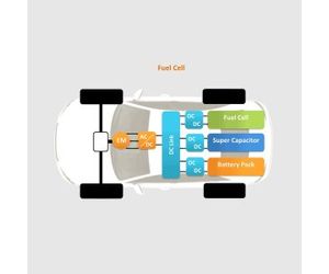 The drivetrain of hydrogen cars differs from pure electric vehicles due to the energy storage. While pure electric vehicle uses a battery as energy storage, the hydrogen-powered vehicle uses hydrogen as energy storage which is converted to electric power via a fuel cell.