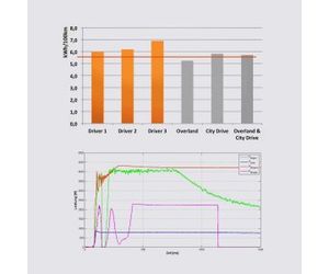 The first chart shows an example of the acceleration behavior of different test drivers on the same test-track (left) and the analysis in different driving situations. The acceleration behavior can influence the energy consumption of up to 10 %.