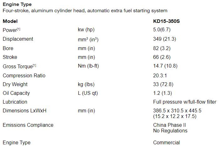 Kohler -Â Model KD15-350S -Diesel Air-Cooled Engine