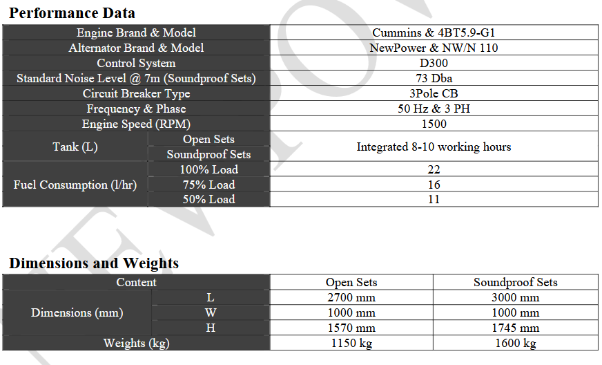 Ratings at 0.8 power factor: Ambient reference conditions: 1,000 mbar, 27ºC, 30% relative humidity. Standby Power Standby duty, operation under variable load, without over load. Prime Power-Continuous duty operation, under variable load 24/24h-10% over load permissible 1 hour/12 hours.