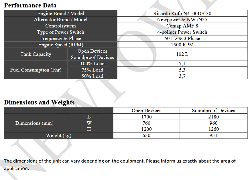 Newpower - Model NWR / 35 -Diesel Generator