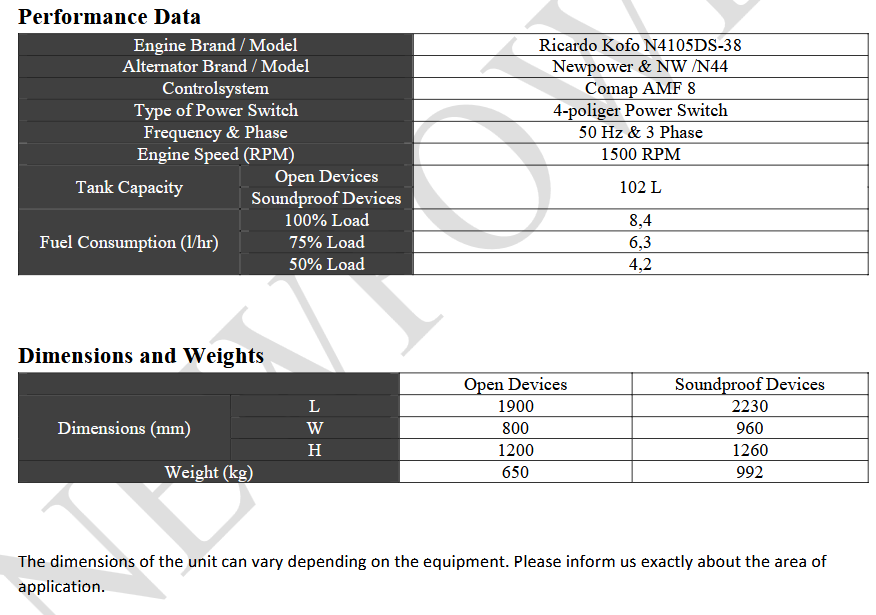Newpower - Model NWR / 44 -Diesel Generator
