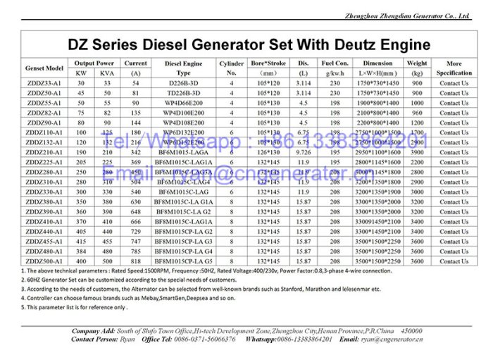 DEUTZ is the first company develops and produces Deutz series diesel engine in Chinese market simultaneously with Europe. By virture of innovative R & D technology,exquisite manufacturing technology, as well as extreme details concern,the engine becomes an ideal power of various generator units(power equipment).The product meets China II and has significant advantage in reliability,power performance and economy.To meet demand of Clients, we can supply the diesel generator with Leroy Somer, Marathon Mecc Alte and Chinese brand alternators for your choice.