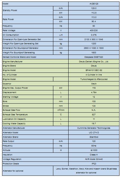 - Rate Current: 162A 5. Deutz Diesel Engine Model BF4M1013EC G2 Max. Output 116kW at 1500R.P.M.