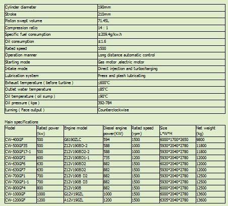 190 series diesel generator set is a kind of high speed and powerful diesel engine with good quality and wide usage. With continuous improvement and adoption of the technology result of modern internal-combustion engine, this engine possesses characters of advanced technique、 economical data、compact in structure、speedy start、easy to operate、convenient maintenance and suitable to work in harsh environment etc. 190 series genset, its motive power is 190 series engine, it is a kind of genset with high quality and high efficiency. The power ranges from 400kw to 1000kw, and can be built into a power station with two or more than two gensets.