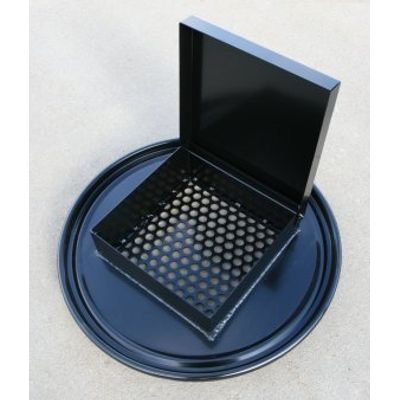 This Drum Collection Lid fits a standard 23 5/8″ outside diameter steel drum and designed to keep weather and thieves away from the contents of your drum. The 16 gauge drum lid has a 14 gauge welded metal collection box; OD 12” x 12” x 5” deep which provides plenty of room to easily pour into. 11 gauge 1/2″ perforated steel is welded in the bottom of the collection box.
