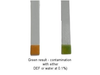 As little as 0.1% DEF will turn the strip green and the same 0.1% water will give the same reaction. At 1% DEF the strip will begin to turn BLUE in a few seconds.