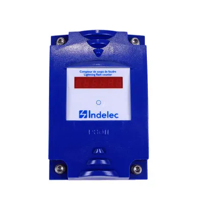The Digital Lightning Flash Counter is engineered to accurately record all direct lightning strikes impacting the external lightning protection systems. This device is instrumental for maintaining records, ensuring that lightning protection measures are verified and effective. This counter utilizes advanced digital technology to capture and store data, making it an essential tool for facilities needing comprehensive lightning event logs. The ability to precisely document these events aids in the assessment and maintenance of the protection system, ensuring its operational readiness and reliability. The product, integrated into broader lightning protection solutions, aligns with the rigorous standards of safety and technical specifications in the field. Featuring compact design with robust capability, it offers consistent performance even in challenging environmental conditions, underlining Indelec's commitment to safety and precision in lightning protection.