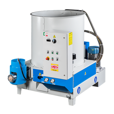 The ideal briquetting press for large carpentry businesses. This product is a hydraulic machine for recycling wooden chips, sawdust, powder and ground scrap, depending on the screen mounted on the grinder, (the best moisture content should be between 8%–17%) coming from joineries, and transforming them into cylindrical briquettes without adding any binder or chemical additives offering considerable advantages. It is designed for being applied also to silos or filtering batteries indoors or outdoors.