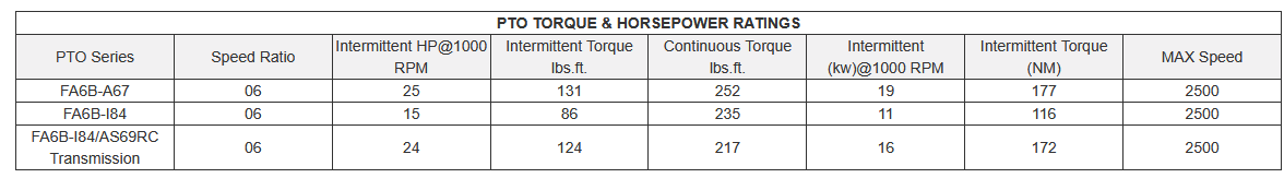 FA6B`s angular housing design moves the clutch shifted output below chassis obstructions for either drive shaft applications or direct mount pumps. Muncie`s FA6B Series PTO is activated by electric over hydraulic means for positive engagement while providing maximum torque capacity with a surprisingly simple installation.