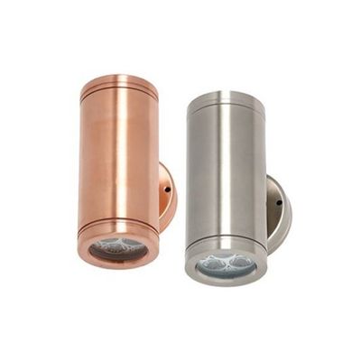An elegant wall mount with bidirectional light output available in both stainless steel and copper construction. Mount on vertical surfaces for simultaneous up and down lighting.