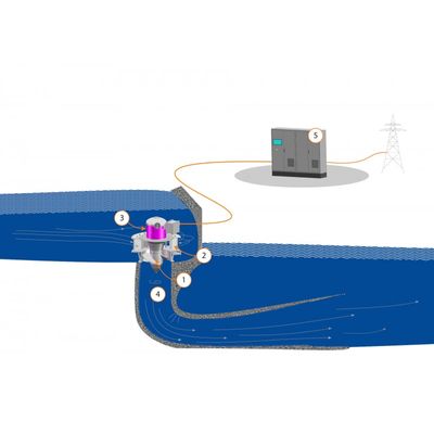 The runner of the DIVE-Turbine is directly connected to the generator without mechanical transmission (gearbox): noise and vibration are minimized. The inverters can be water-cooled and operate in a completely closed system. Only minimal noise or sounds reach out of the power house. Thus, the DIVE power plant is suitable for residential and naturally protected areas.