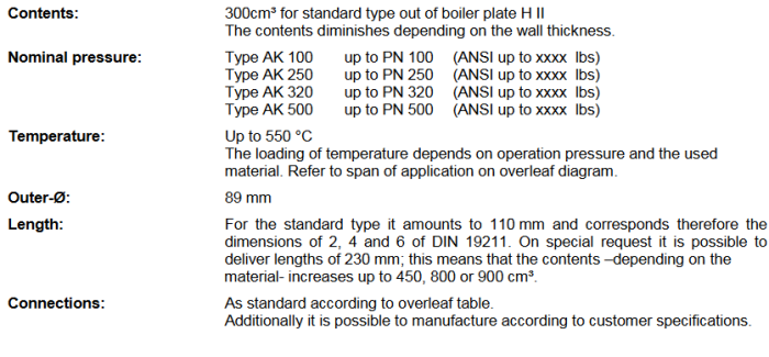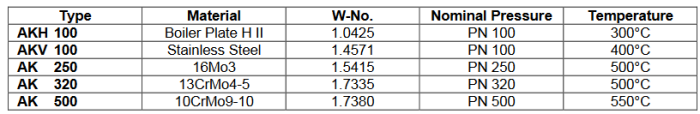 According to the operating conditions the materials are boiler plate H II, stainless steel or heat-resistant steel 16Mo3, 13CrMo4-5and 13CrMo9-10.