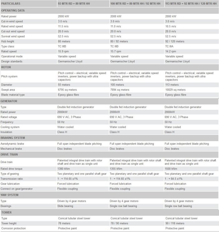 - Advanced electronic control systems resulting in higher machine uptime. Hub height of 80/92/113 meters – to capture better wind speeds.